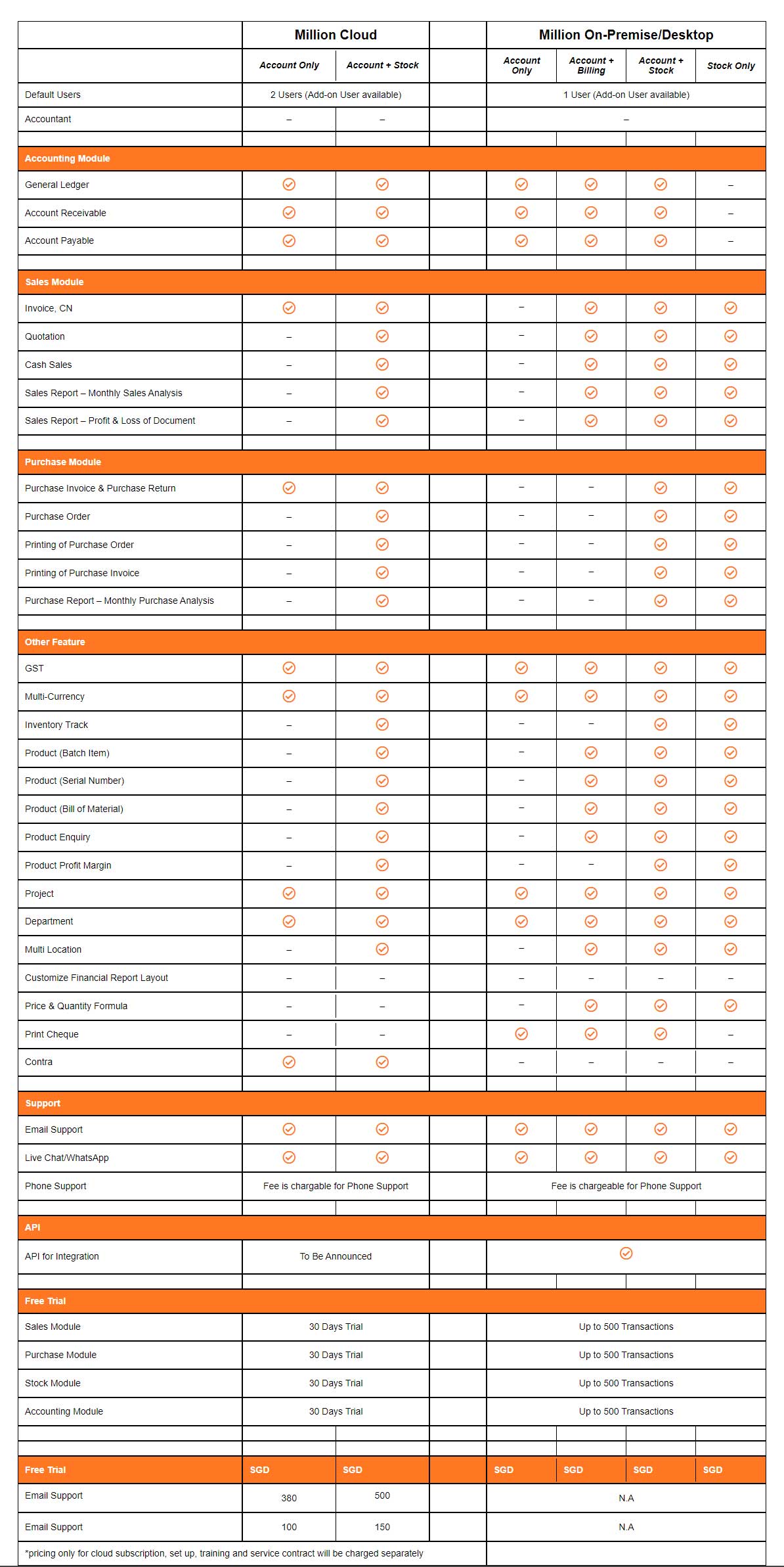Do refer to the comparison table below between Million On-premise vs CloudMaking the Decision: